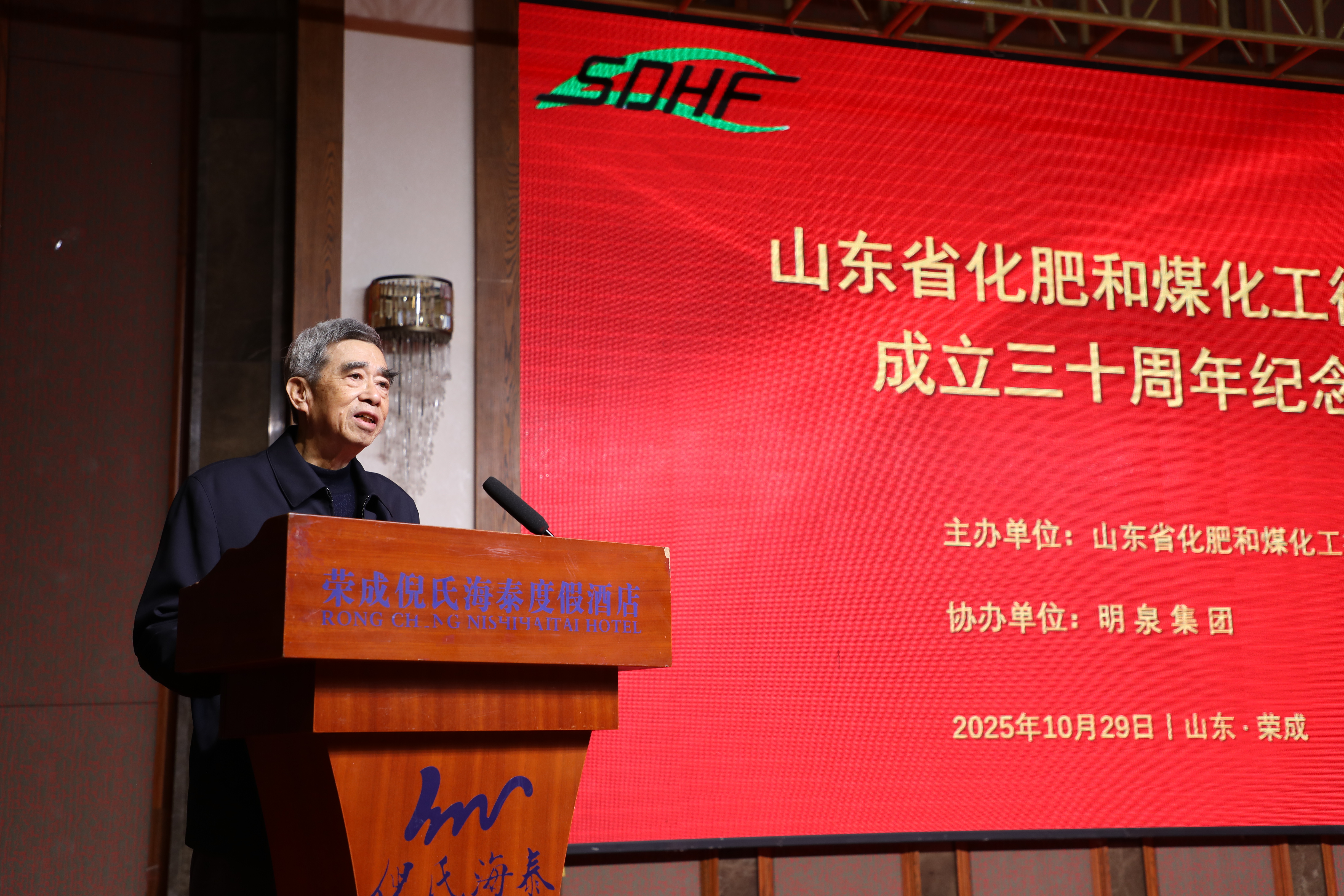 副会长、明泉集团董事局主席孙洪海为大会讲话,他向协会成立三十周年表示热烈祝贺。他指出:协会成立三十周年不仅是其发展历程中的重要里程碑,也是全国化肥和煤化工行业的一件大事。山东化肥和煤化工行业历经三十年深度调整与转型升级,正迈向高质量发展新阶段。三十载风雨同舟,行业如今站在新的历史起点。面对新形势,要始终紧跟协会步伐,坚持高端化、智能化、绿色化发展方向,持续走在绿色低碳、高质量发展的道路上。